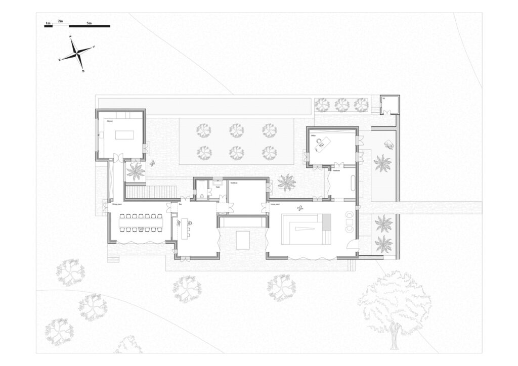 Cette maison est conçue pour s’harmoniser avec le climat, et non pour le combattre. Sa forme et son orientation répondent directement au soleil, au vent et à la topographie. Plutôt que de recourir à des systèmes mécaniques, nous avons privilégié les principes bioclimatiques, profondément ancrés dans l’architecture vernaculaire, en collaboration avec des ingénieurs bioclimatiques.