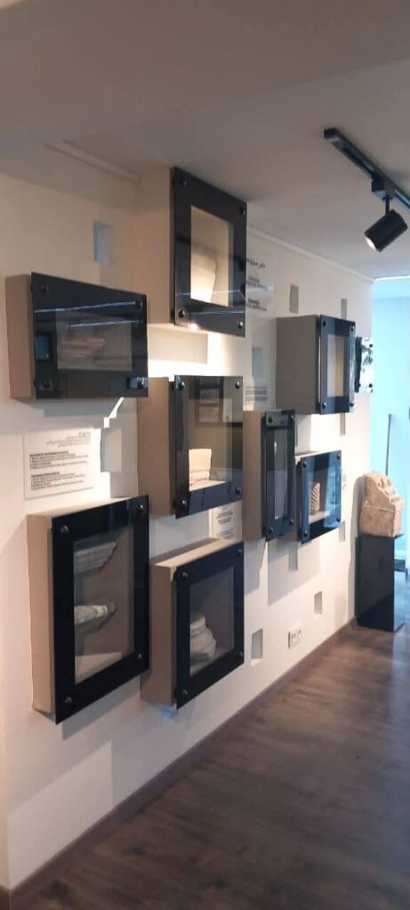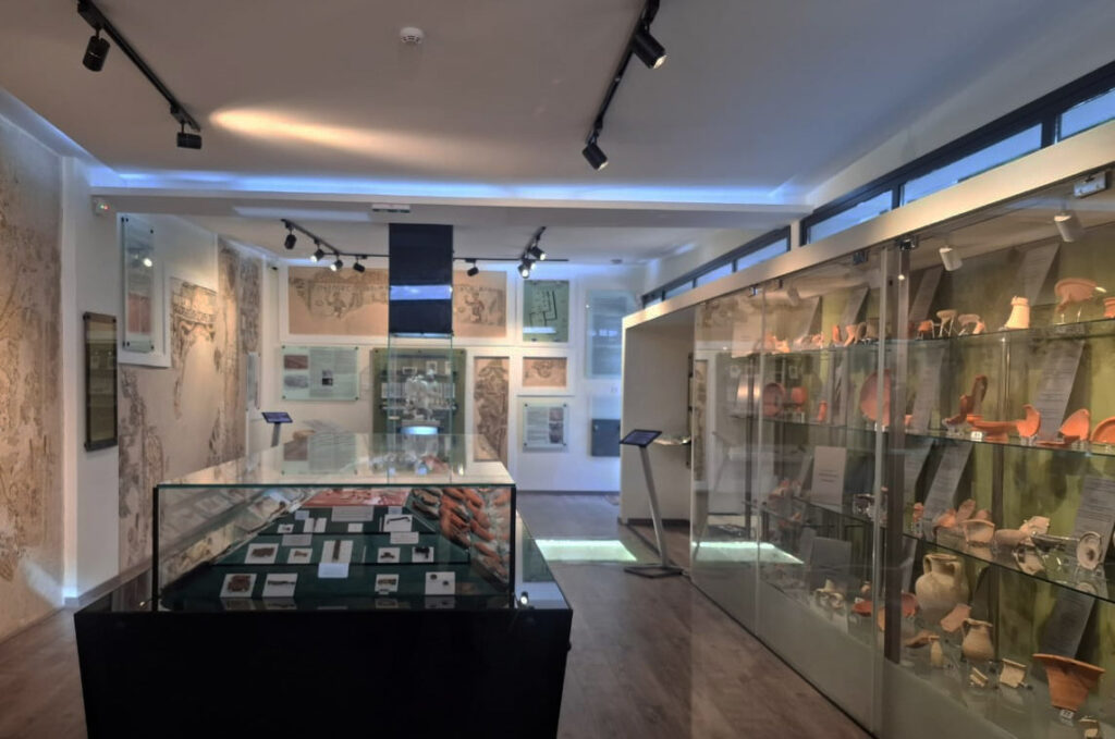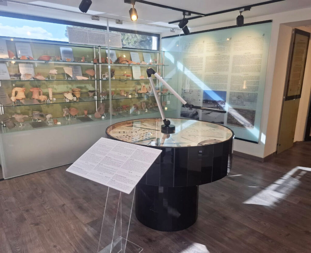 La muséographie toute fraiche met en valeur les pièces de monnaie trouvées sur place, une table avec une loupe amovible permet aux visiteurs d’apprécier la numismatique antique.