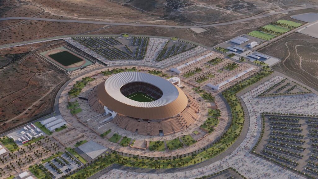 Le Grand Stade d’Agadir portant le nom de d’Adrar, baptisé du mot amazigh signifiant « montagne », a fait l’objet d’un vaste chantier structuré en deux phases. La première, aujourd’hui achevée, a permis de répondre aux exigences de la Confédération africaine de football et de la FIFA pour la CAN 2025, tandis que la seconde est programmée dans la perspective de la Coupe du Monde 2030, que le Maroc coorganisera avec l’Espagne et le Portugal.