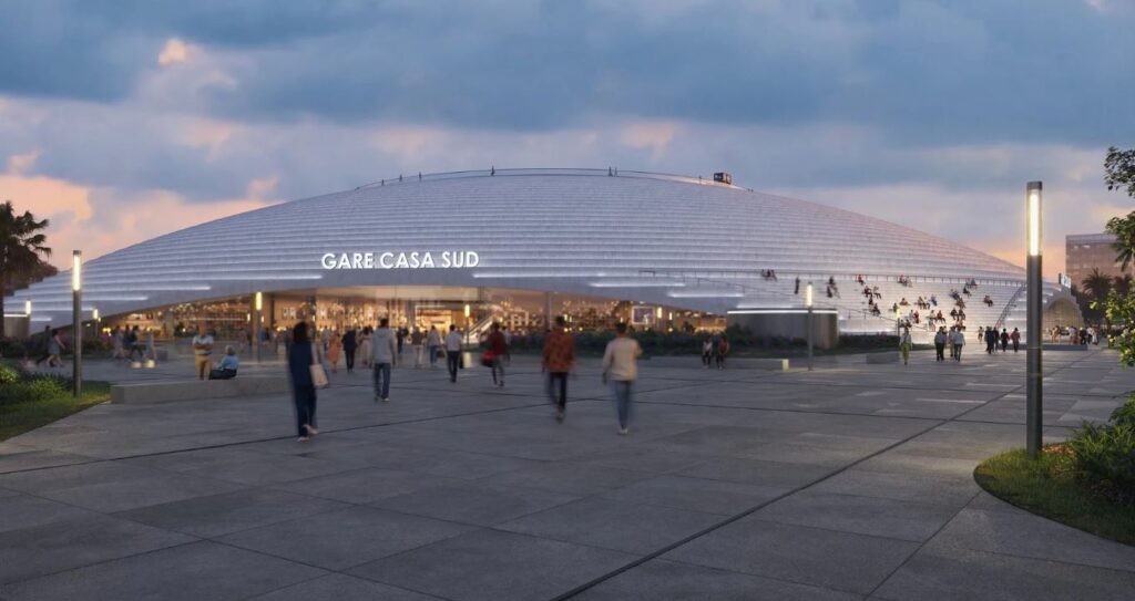 La Gare Casa Sud s’impose comme le futur pôle ferroviaire majeur de Casablanca, avec une superficie de plus de 21 980 m². Conçue comme un véritable repère urbain et une centralité stratégique, elle se dressera au cœur de Casablanca comme un monument contemporain, à la fois lieu de passage, parc urbain et espace de rencontre, incarnant l’ambition de la capitale économique de se doter d’infrastructures de mobilité à la hauteur de son dynamisme.