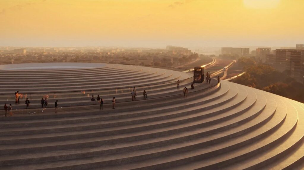 Son architecture se distingue par une voûte monumentale qui englobe toutes les fonctions et inonde les espaces d’une lumière douce et diffuse. Ouverte sur la ville grâce à une vaste esplanade connectée au tramway et un grand parvis, elle accueillera également un belvédère à 360° offrant une vue inédite sur Casablanca. Ce projet s’inscrit dans la tradition locale d’une architecture innovante, tout en affirmant une présence urbaine intemporelle et sereine.