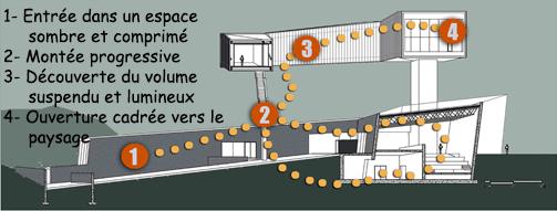 À l’image du photographe qui sélectionne un champ et un hors-champ, l’architecte dispose ses volumes et ses ouvertures pour cadrer certaines portions du paysage jugées dignes d’être vues, tout en en excluant d’autres.
