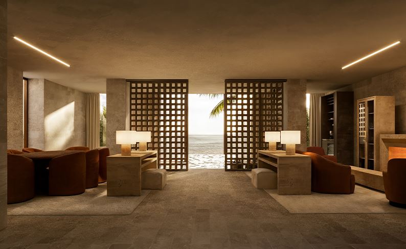 Instead of imposing strict geometries, interiors and suites are organized to follow the natural curves of the land, highlighting a design philosophy that values topographical harmony over formality. A sense of place is strengthened by earthy colors, organic materials, and expertly designed details. Throughout the day, atmospheric changes are orchestrated by lighting, wind, and shadow.
