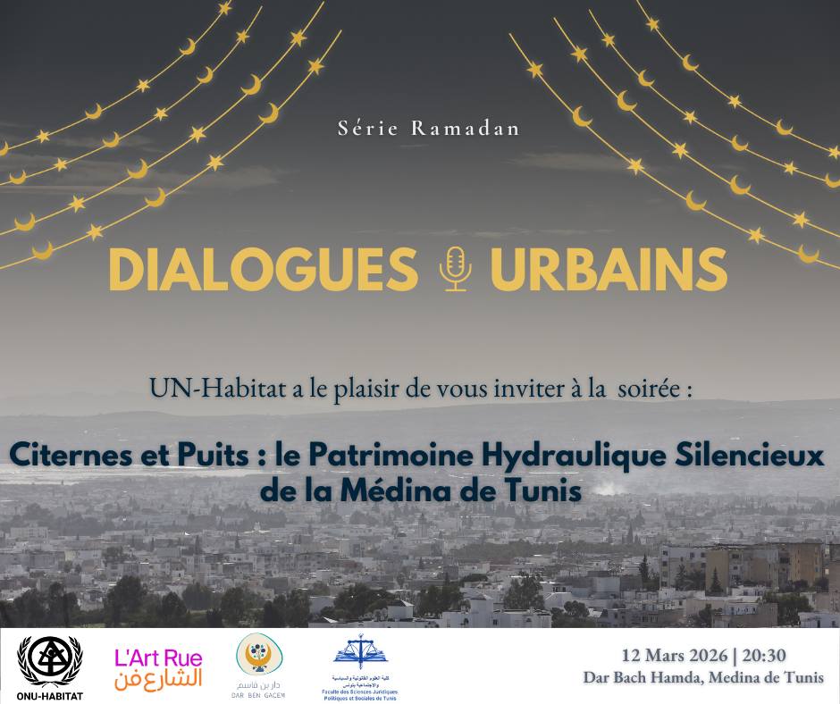 Le jeudi 12 mars à 20h30 un Dialogue urbain autour des « Citernes et puits : le patrimoine hydraulique silencieux de la médinas de Tunis », au siège de l’Art Rue, rue Kouteb Louzir, dans la Médina de Tunis.